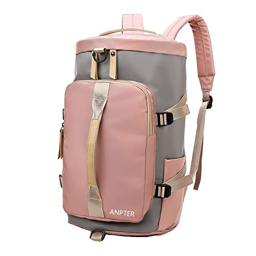 *Multi-Functional Portable Sports Duffel Bag Weekender Bag for Women and Men Large Capacity Outdoor Leisure Sports Yoga Swimming Bag with Wet Pocket & Shoe Compartment, Oxford Fabric -Pink*